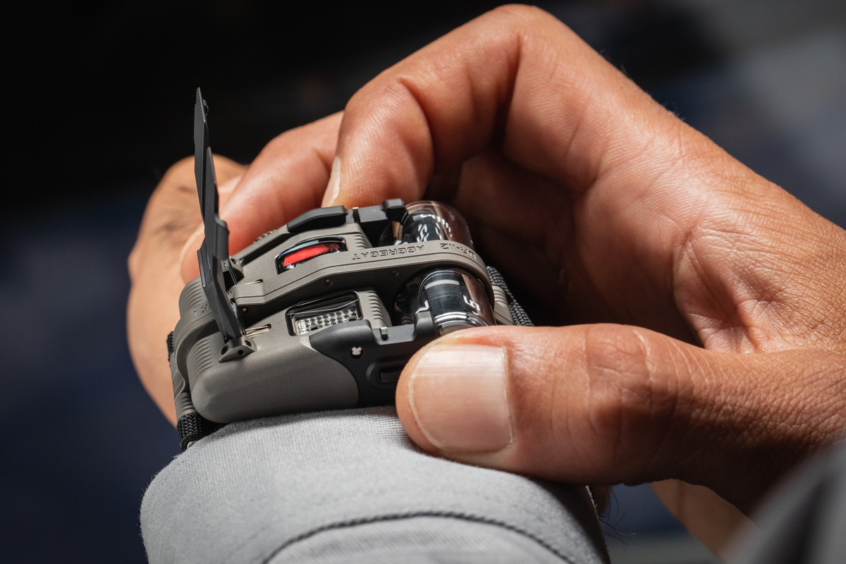 Coming on a fabric strap and in a limited edition of 25 pieces, the RRP for this first UR-112 Aggregat bicolore edition is CHF 250,000.