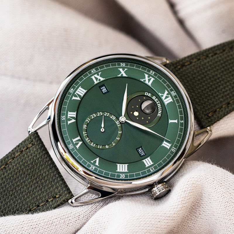 De Bethune has launched a new DB25QP Perpetual Calendar with a green guilloché dial and a new 44mm sized titanium case. As some of you may recall, this is not the only green-dialled piece that De Bethune have released this year.