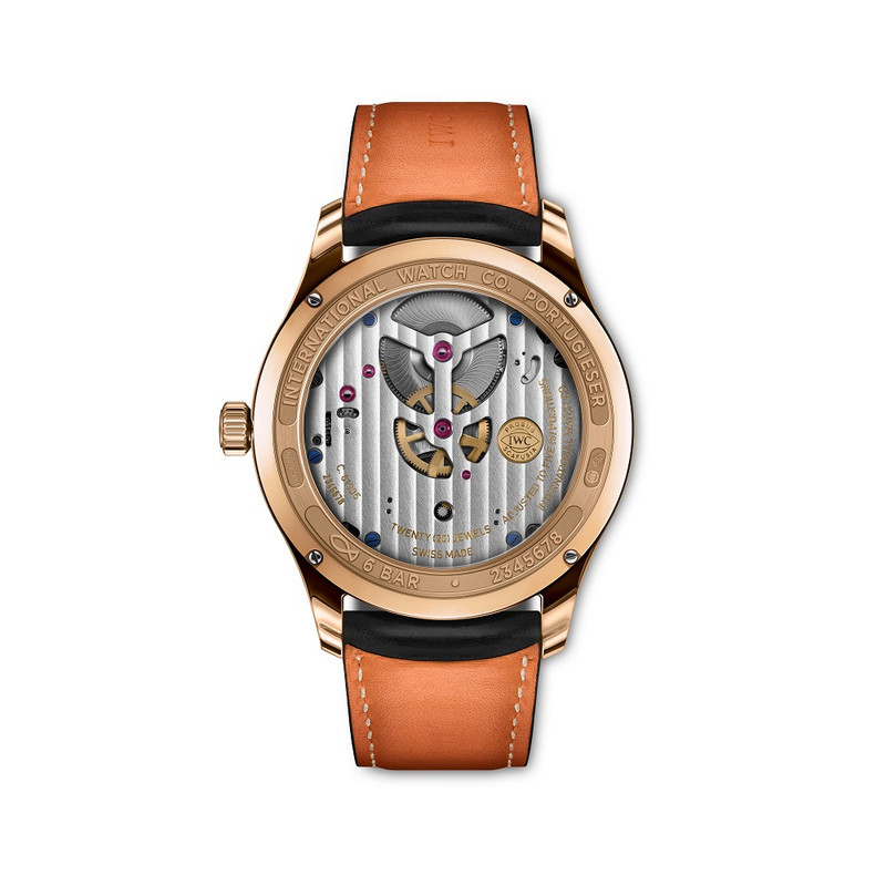The 42.4mm (10.8mm thick) case is made of 18 carat Armor Gold®, IWC’s proprietary version of 5N red gold. Comprised of 75 per cent pure gold, its mix is both for colour and hardness. It was first used in their Big Pilot’s Watch Constant Force Tourbillon Edition ‘Le Petit Prince’ (2018).