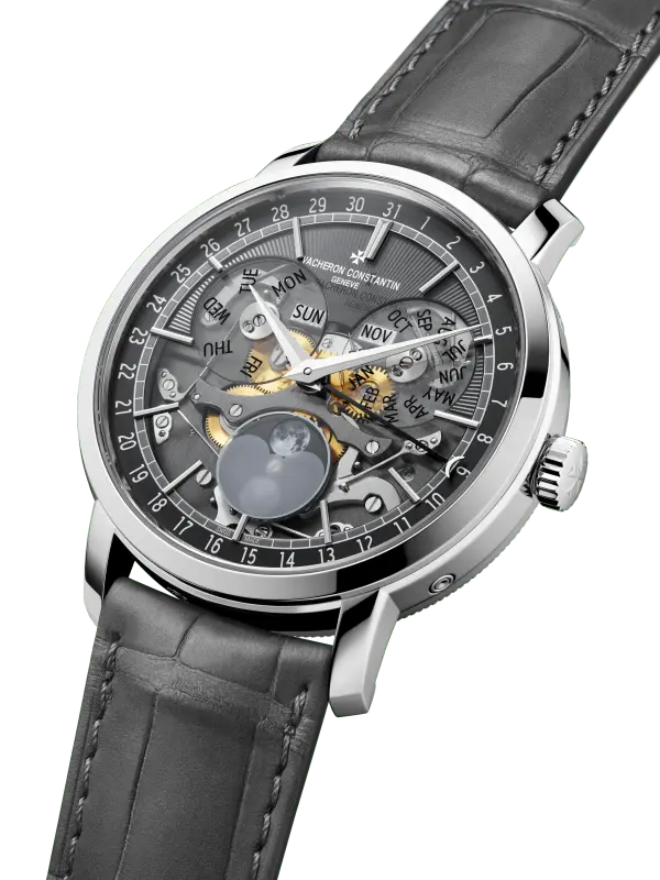 Water-resistant to 30m, these two new Traditionnelle models come on a calfskin-lined grey Mississippiensis alligator strap with either an 18K 5N pink gold or 18K white gold pin buckle.