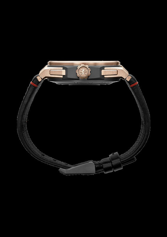 What is ceramised titanium? Exactly what it sounds like – adding a layer of scratch-proof ceramic onto titanium. It is created through a process of titanium oxidation treatment that gives it a hardness of 1000 Vickers. Chopard states this is the first time that this has been combined with red gold in a watch.