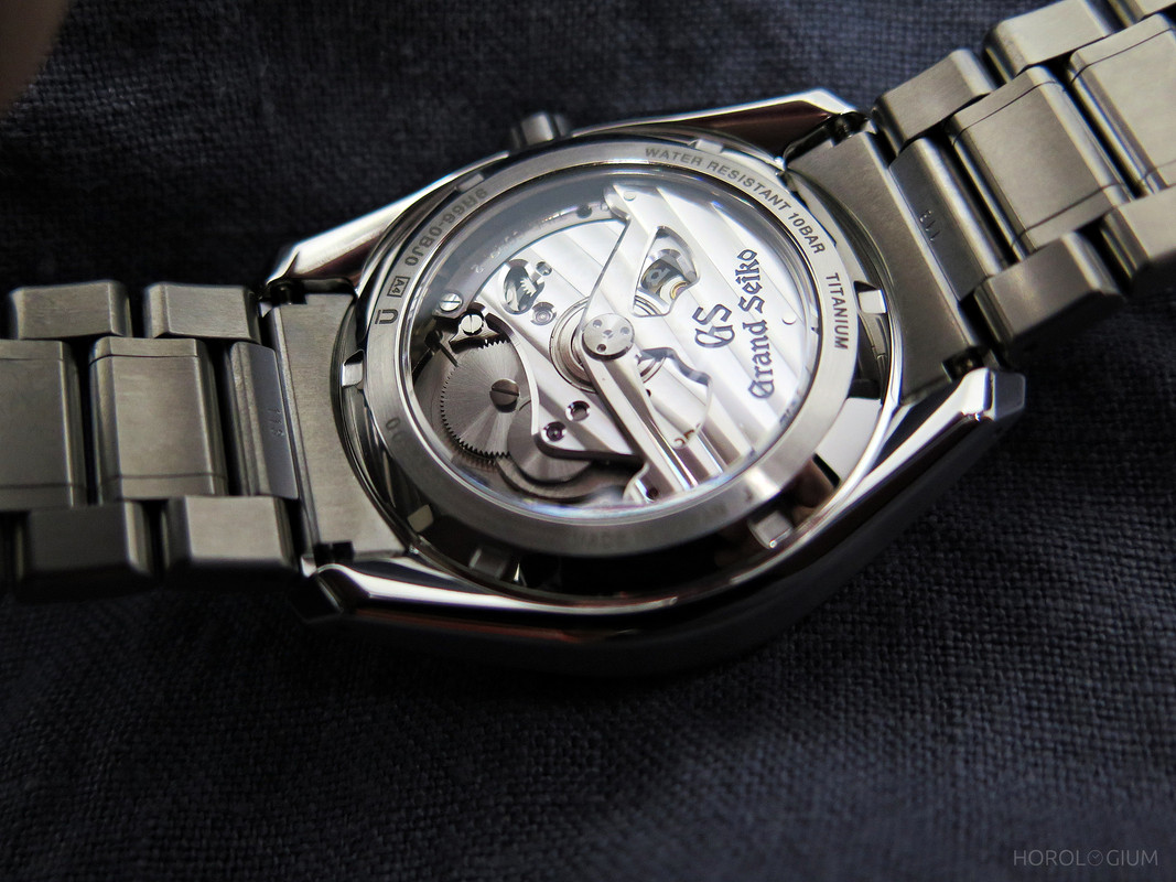 Size wise, the case is 41mm with a thickness of 13.9mm. Both the case and bracelet are made from high-intensity titanium which, according to Grand Seiko is approximately 30% lighter than stainless steel and brighter in colour in addition to the usual benefits of using titanium. They have a screw-down crown and a water resistance of 100m. The lugs have a bevelled edge.