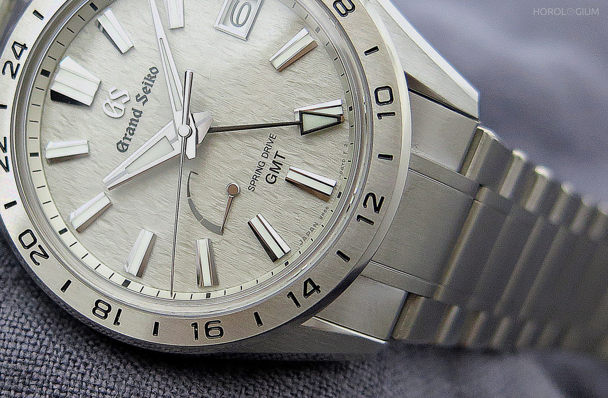 Today we shall be looking at the SBGE283 and SBGE285, the GMTs. They share the same specifications but have different dials – the Grand Seiko SBGE283 features a smooth black dial, whereas the SGBE285 has a light grey textured dial.