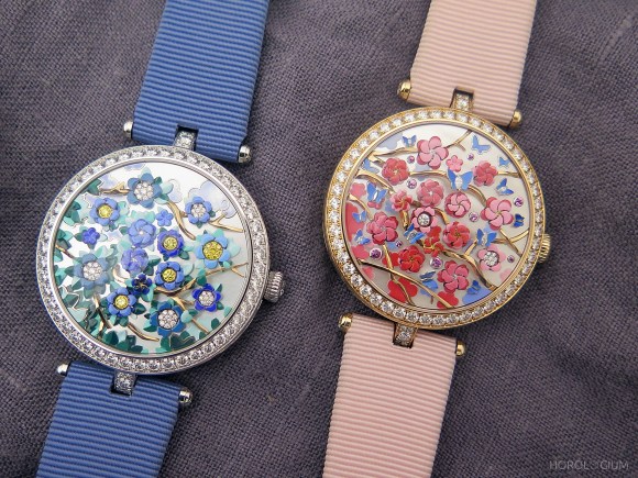 The ‘poetry of time’ theme realises itself in these watches in the form of capturing the passage of time through flowers opening and closing.