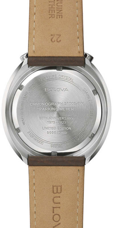 The new Parking Meter doesn’t have a Swiss mechanical movement – instead, Bulova have gone with a quartz Miyota 0S21 with a dual-time feature which is set by the crown at 6 o’clock.