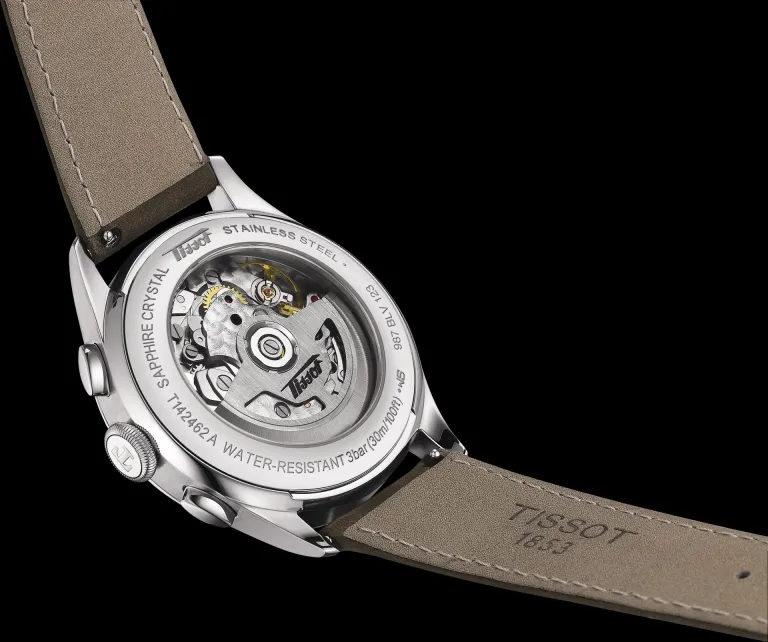 Inside the Telemeter 1938 is the newly upgraded automatic Valjoux A05.231 with a Nivachron™ balance spring, a new ‘Tissot Heritage’ rotor, and 68 hours of power reserve.