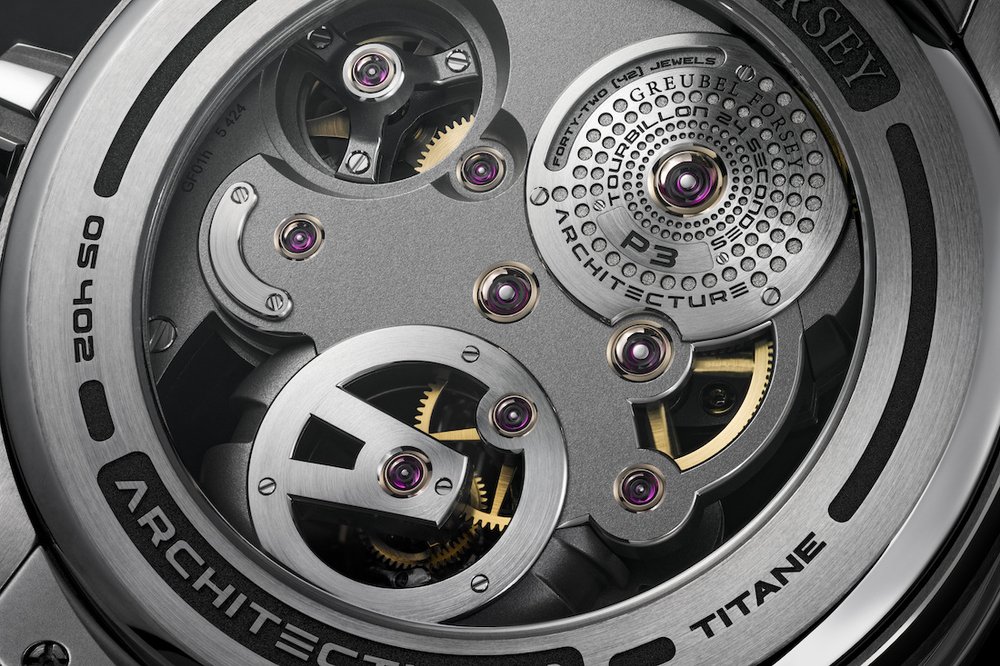With the Tourbillon 24 Secondes Architecture Greubel Forsey has launched a new calibre along with a new model. The watch features a freshly designed titanium and sapphire crystal “convex conical frustrum” shaped case which highlights the new movement – a sapphire crystal ring forms the entire case band, allowing the movement to be seen from above, below and side.
