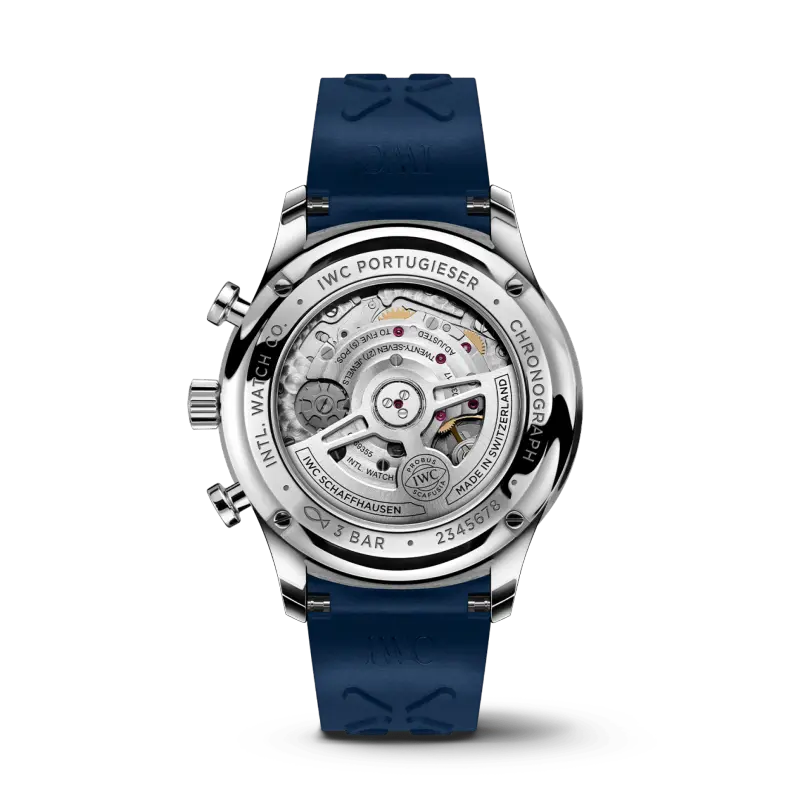 The new Portugieser Chronograph Ref. IW371620 is in a smaller stainless steel case – 41mm, with a thickness of 13.1mm. Water resistance is also 30m.