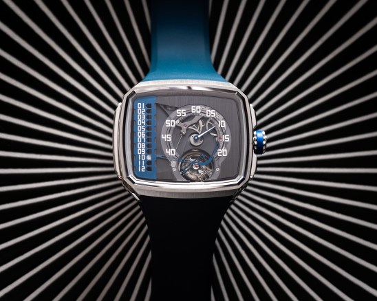 The new Hautlence Linear Series 1 comes on an integrated blue rubber strap with a stainless steel deployant. Limited to 28 pieces, it has an RRP of CHF 59,000.