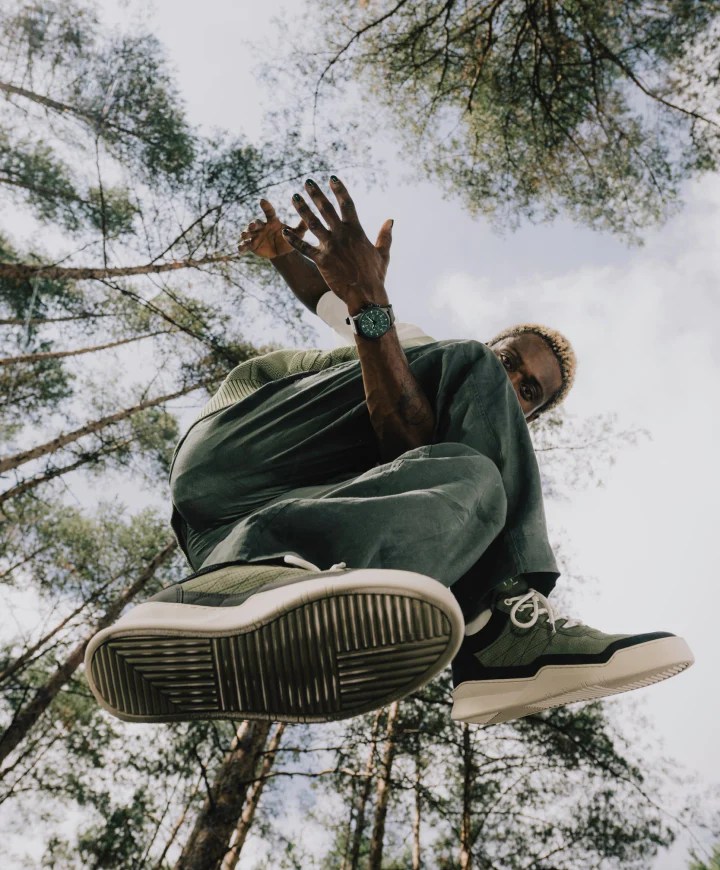 IWC have lent this year’s Woodland (PANTONE®) colour, as seen in the Pilot’s Watch Chronograph TOP GUN Edition “Woodland” with the newly developed dark green ceramic case, to well known Dutch brand Filling Pieces, and come up with a sneaker featuring this colour.