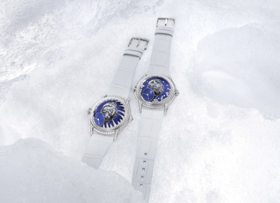 For ‘Blizzard’, Tarpin’s inspiration was being caught in them when skiing in the Alps. Brilliant-cut diamonds set under the sapphire crystal dome and closed-set diamonds set into the dial depict snowflakes on the ground.