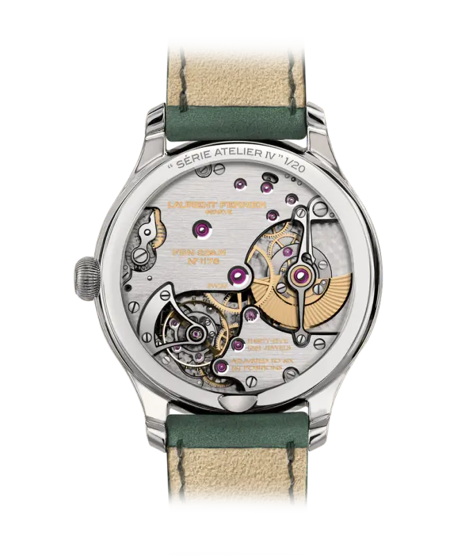 Coming on a ‘forest green’ nubuck leather strap with Alacantara lining with agrade 5 titanium pin buckle, the Classic Micro-rotor “Série Atelier” Magnetic Green is in a limited edition of twenty pieces. Priced at CHF 49,500 excluding tax, it is exclusively available on the Laurent Ferrier website.