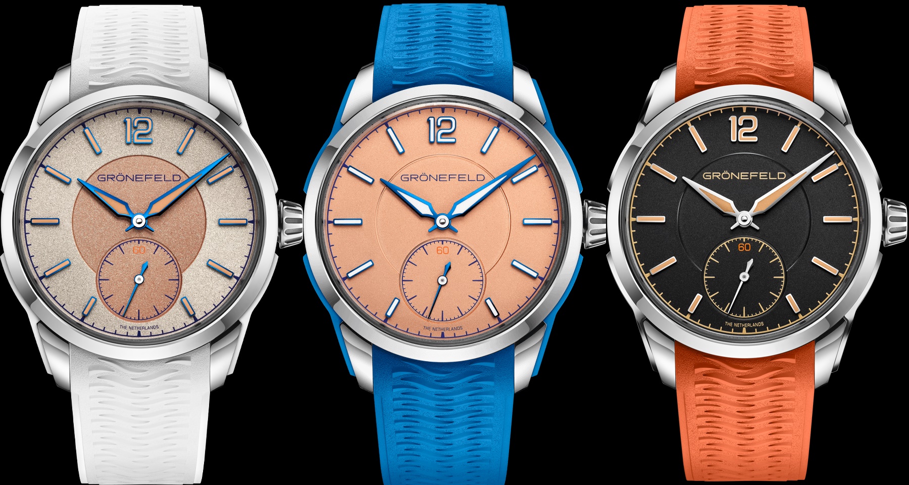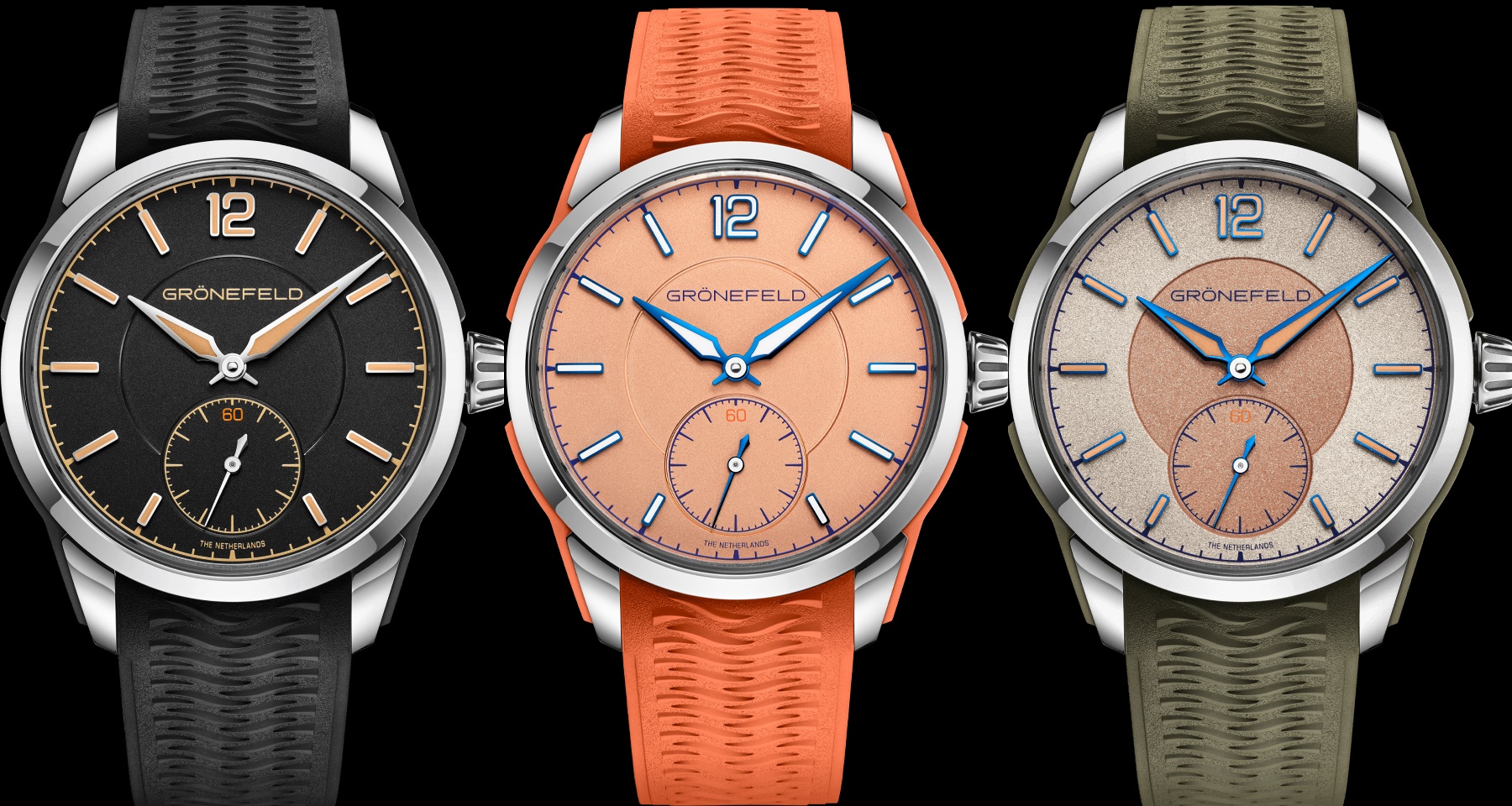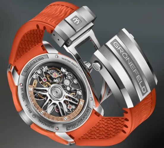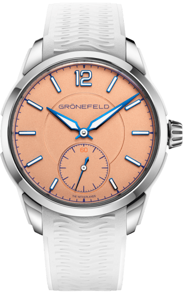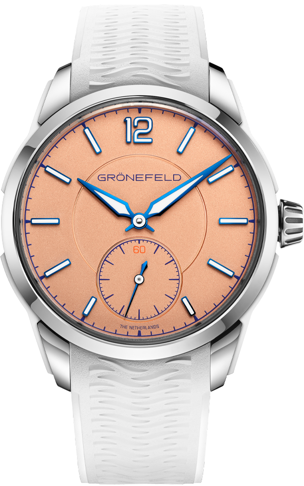 The case back features ‘GRÖNEFELD’ and ‘DELTAWORKS’ in relief, and in yet another nod to the geography of the brothers’ watchmaking, ‘Oldenzaal’ is engraved opposite the crown.