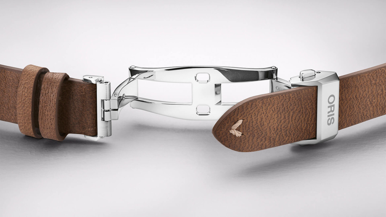 The new Big Crown Caliber 473 comes on a Cervo Volante sustainable olive brown deer leather strap which features the inaugural appearance of a newly designed butterfly clasp with fine adjustment system.