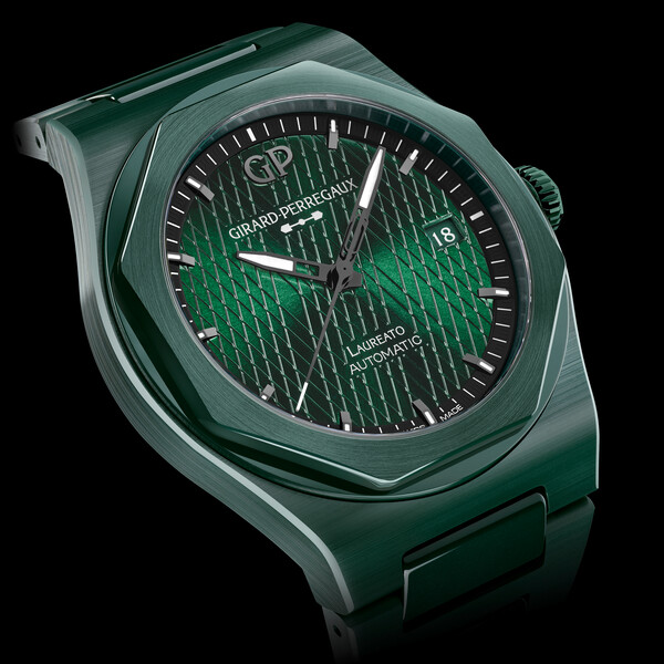 The original Laureato was characterised by an octagonal bezel atop a circular level on top of a tonneau-shaped case and now, all of these well-known features are in green ceramic, along with the integrated bracelet, with a combination of polished and satin finishing.