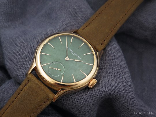 The new Laurent Ferrier Evergreen watches are available now with the Square Micro-Rotor Evergreen CHF 47,500 CHF and the Classic Micro-Rotor CHF57,500. These two new models are colour/ metal variations on well-known models, so within the ‘green spectrum’ offerings of recent years it is all down to a matter of personal preference. Full disclosure that mine is for darker rather than lighter hues.