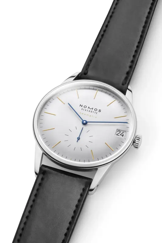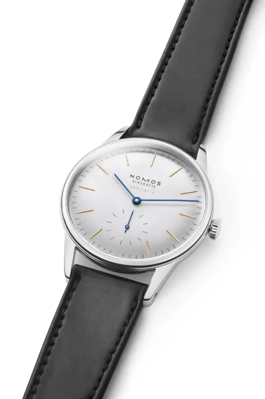 With a small seconds dial at 6 o’clock, the Orion neomatik and Orion neomatik 39 models use the in-house automatic Calibre DUW 3001 which has a power reserve of 43 hours. It features a stop seconds, and Glashütte three-quarter plate. There are tempered blue screws and rhodium-plated surfaces with Glashütte ribbing and NOMOS perlage.