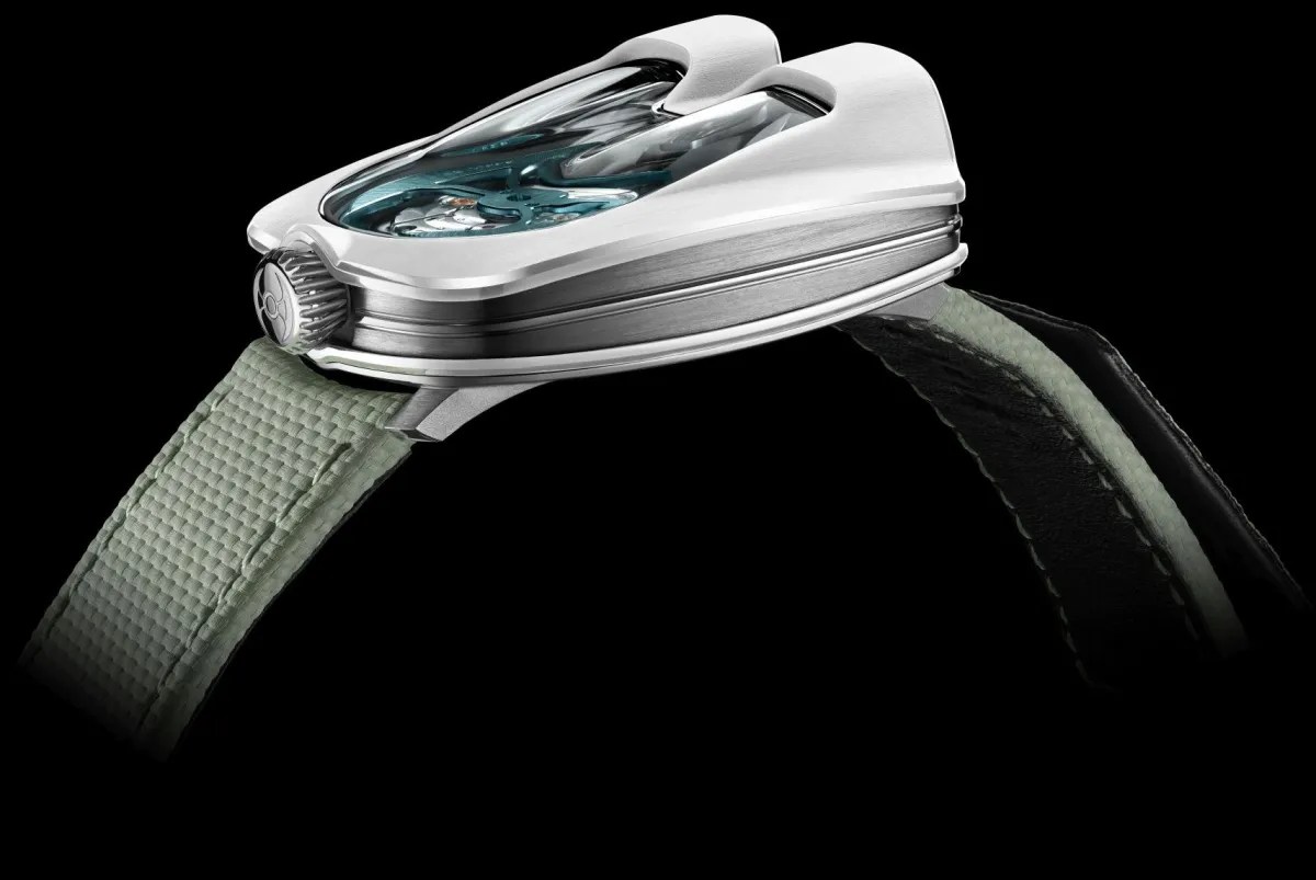 Coming on calf straps (white for the British green model and green for the white model) with a titanium tang buckle, the RRP for the HM8 Mark 2 is CHF 68,000 (excluding taxes).