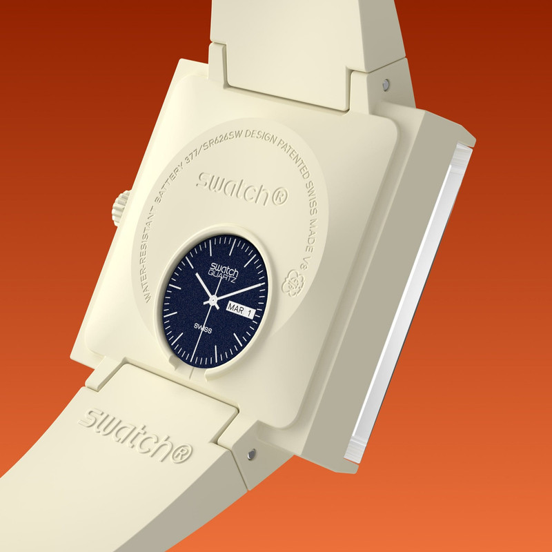 Now, Swatch has released its new BIOCERAMIC WHAT IF? collection, featuring four models in square cases. The ‘WHAT IF?’ refers to the discussion, in the early 1980s, as to whether to put the new Swatch brand’s watches in square or round cases. There were prototypes made of both options (see above).