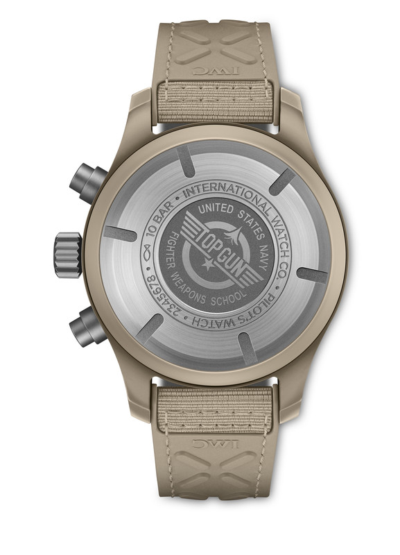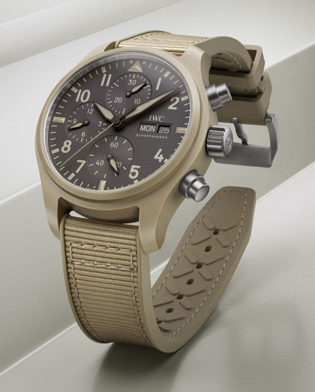 The second new piece in this mini ‘collection’ release is the Chronograph 41 TOP GUN Mojave Desert (Ref. IW389402), which has a beige sand-coloured ceramic case measuring 41.9mm with a thickness of 15.5mm and water resistance of 100m.