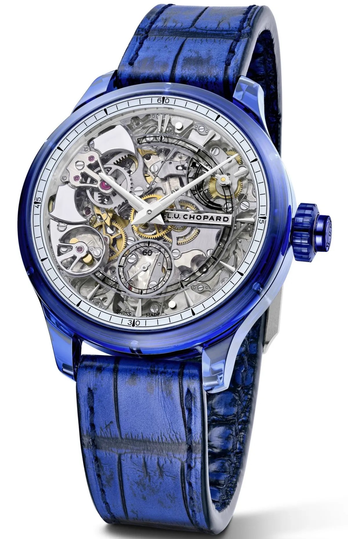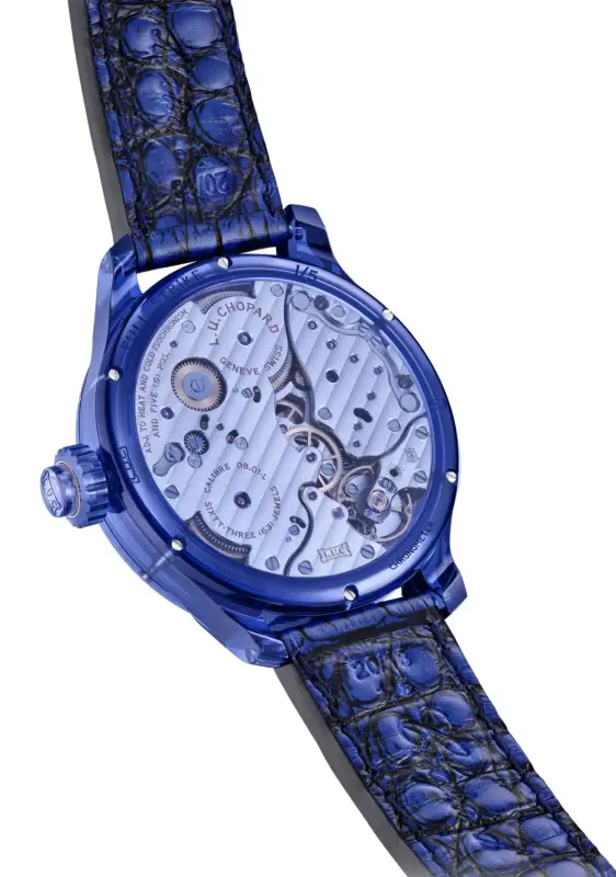 Now there is a new (also limited to five pieces) L.U.C Full Strike Sapphire minute repeater, this time in a blue sapphire case – the blue is achieved through the use of chromium and rare earth elements.