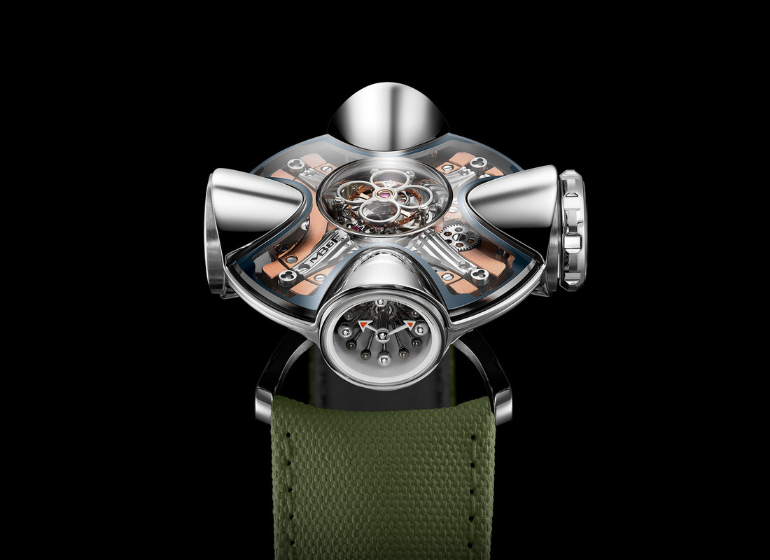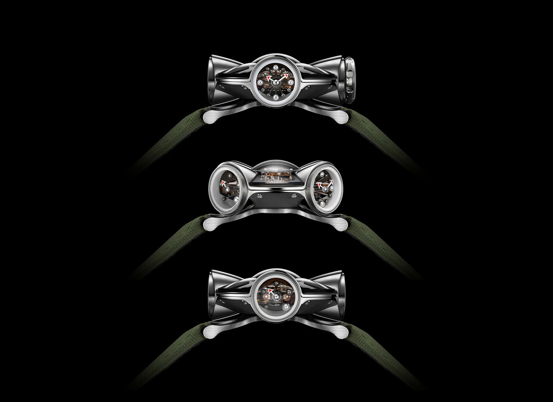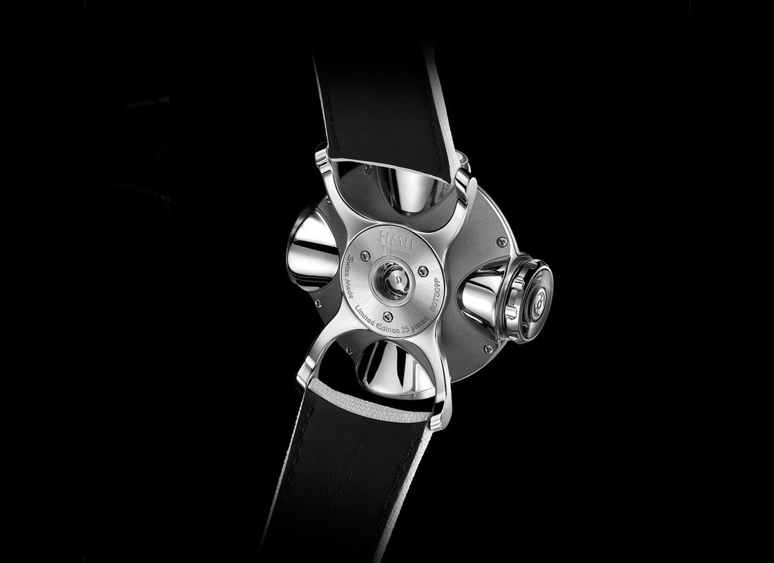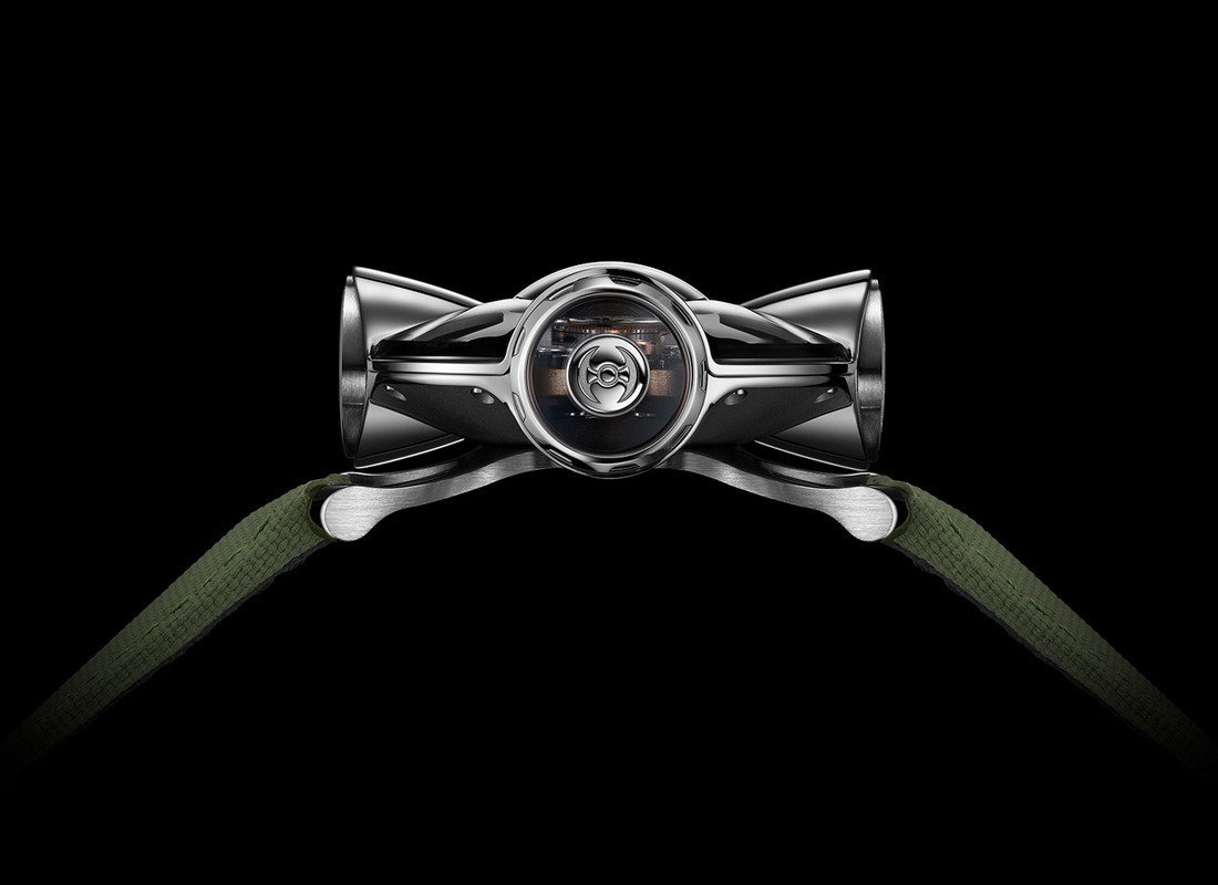 Coming on either a white or khaki rubber strap with a titanium buckle, the straps are attached on short curved ‘mini lugs’ which bring it close to the wrist. The MB&F HM11 Architect is priced at CHF 198,000.