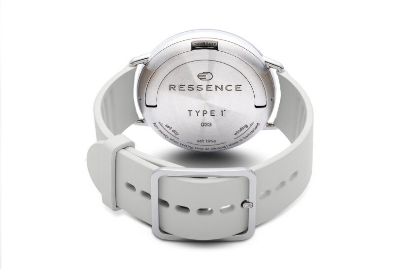 The Grade 5 titanium case is 42.7mm (thickness of 11mm), weighing 64g, and comes on a light grey rubber strap with an ardillon buckle. The new Ressence TYPE 1° M is now available, with an RRP of CHF 16,800 (excluding taxes).