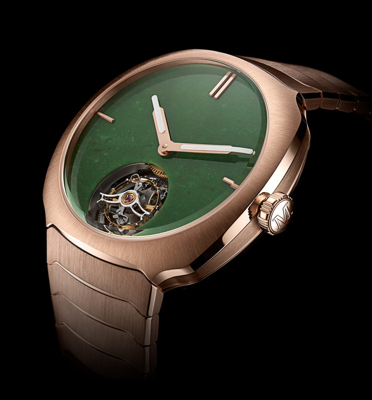 Limited to 100 pieces, the new Streamliner Tourbillon Wyoming Jade comes on an 18kt red gold integrated bracelet with folding clasp with three blades and has an RRP of CHF 109,000.