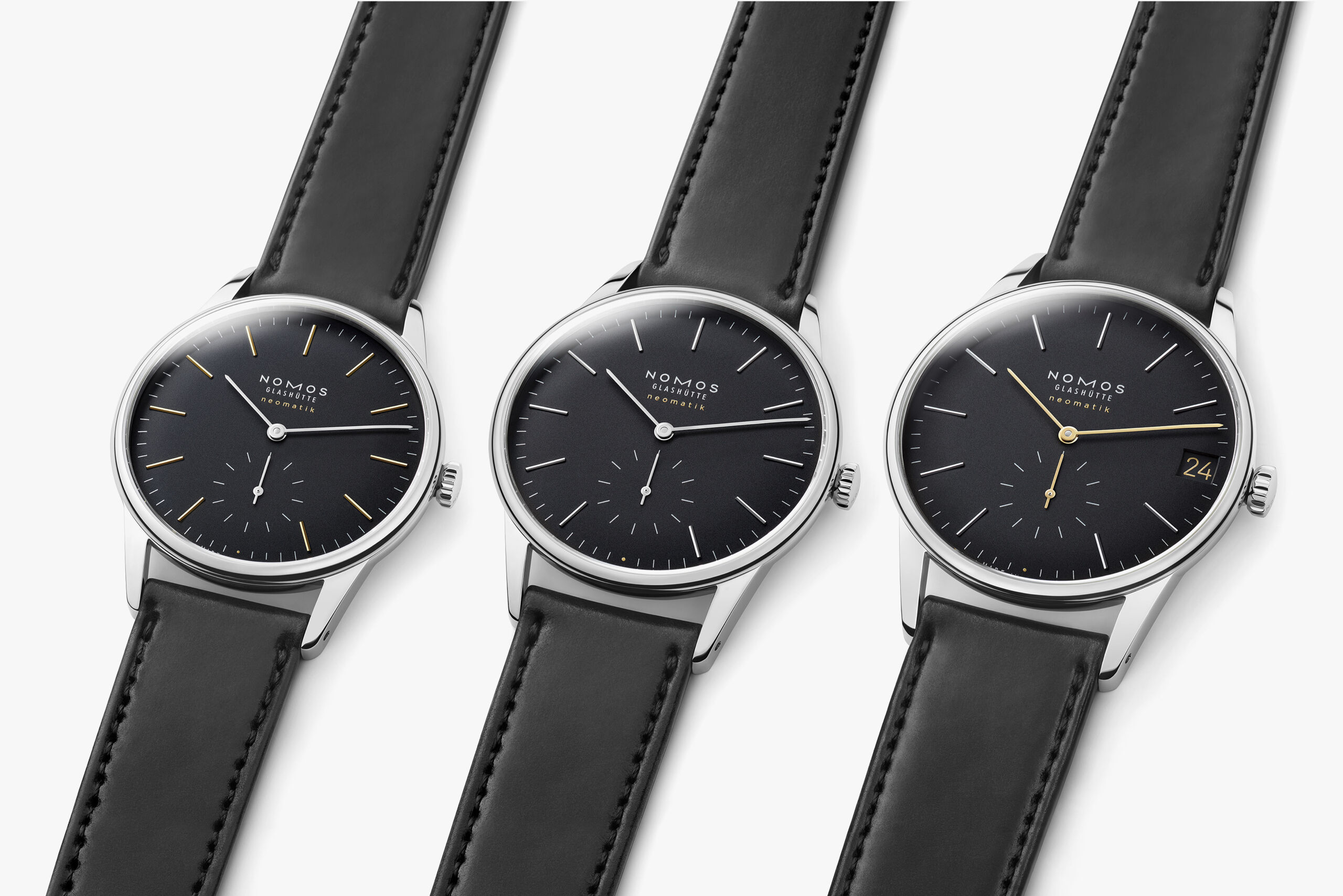 They are the Orion neomatik new black (Reference 396), Orion neomatik 39 new black (Reference 346), and Orion neomatik 41 date new black (Reference 366). All three have water resistance of 50m.