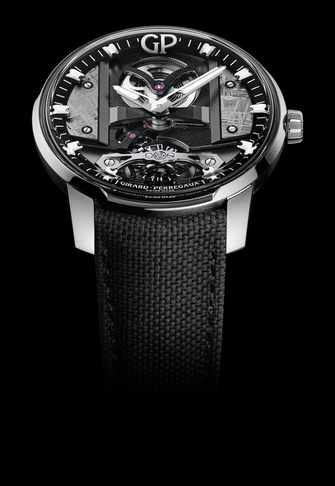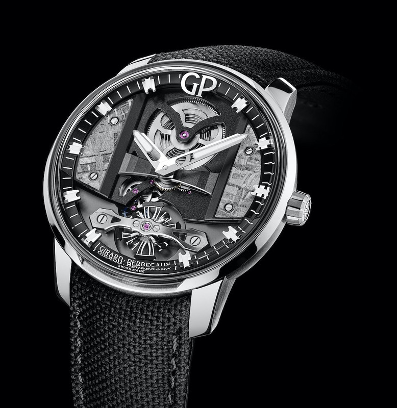 Coming on a black rubber strap with a fabric effect, the new Girard-Perregaux Free Bridge Meteorite has an RRP of CHF 24,600.