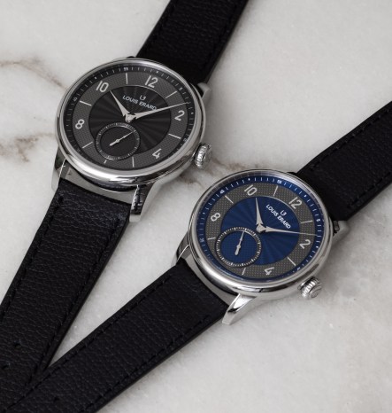 Now, the brand has launched two new bi-coloured variants in stainless steel cases, and with guilloché decoration the dials – the new Louis Erard Excellence Petite Seconde Guilloché 42mm has anthracite black, and the Excellence Petite Seconde Guilloché 39mm features blue guilloché. Both models have an anthracite ring and seconds counter, Pantone 2C white transfers, and rhodium-plated signature fir tree hands.