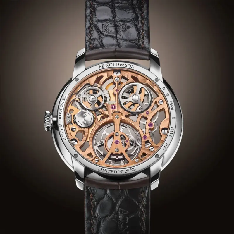 Arnold & Son have launched two new Ultrathin Tourbillon Skeleton 41.5mm models – the Red Gold (5N) and the Platinum (Pt 950), coming in limited editions of twenty-eight pieces each.