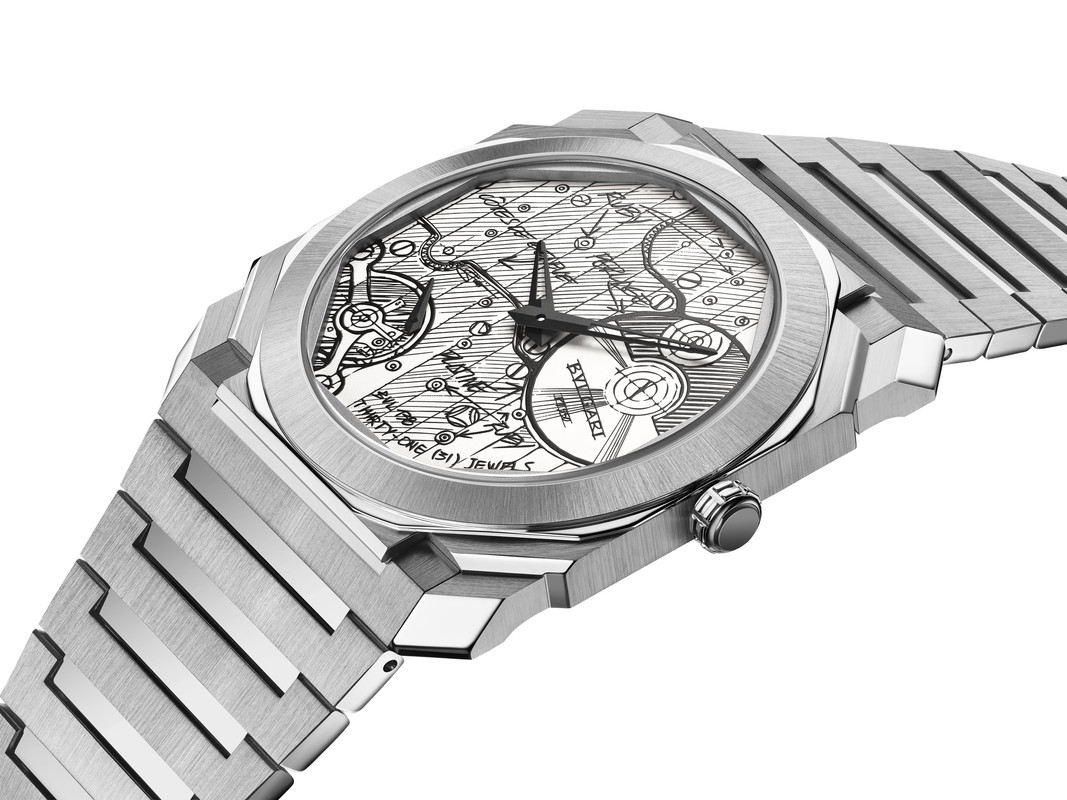The first 2024 Octo Finissimo Automatic Sketch will be available in two limited editions in stainless steel (280 pieces) and rose gold (70 pieces). Both are 40mm with a thickness of 6.4mm and are water resistant to 100m.