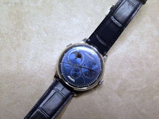 Coming on a dial-matched blue Alligator strap with a double-fold buckle, the new Jaeger-LeColtre Duomètre Quantième Lunaire has an Australian RRP of $71,500.