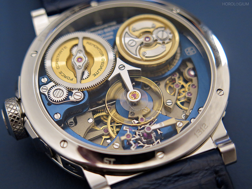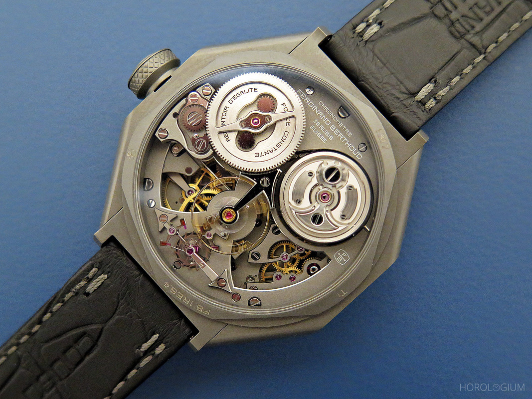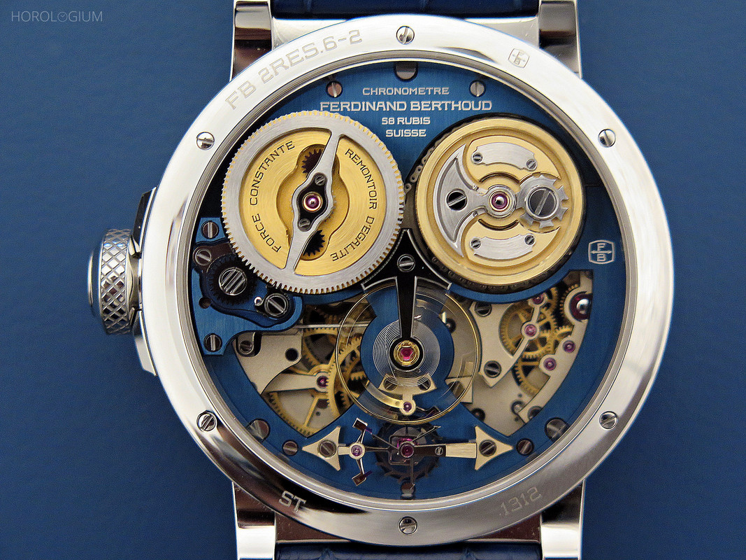 In 2020 Chronométrie Ferdinand Berthoud introduced the Chronomètre FB 2RE. Coming in two limited editions of ten (numbered) pieces each in either 18k white gold or rose gold, it had a new movement, the FB-RE.FC, which combined a one-second remontoir d’égalité with a fusée-and-chain, the latter visible both through the sapphire case back and through a window in the middle of the case’s screw-down frame.