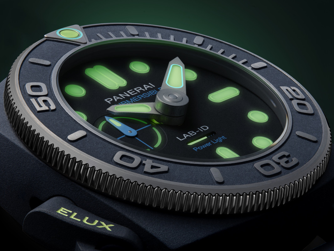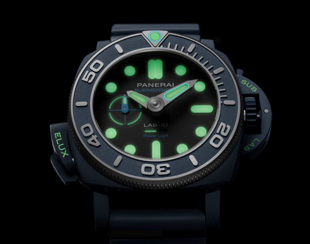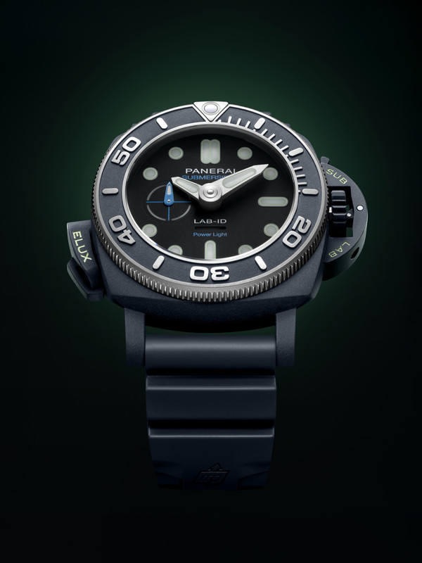 Officine Panerai has introduced the limited edition Submersible Elux LAB-ID PAM01800, a self-illuminating dive watch with a miniaturised on-demand lighting system. Yes you might be forgiven for wondering why the Submersible and not the Luminor for this latest LAB-ID model.
