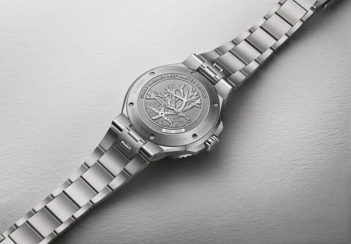 The new Oris Great Barrier Reef Limited Edition IV case back features commemorative engravings and the limitation number out of 2,000 and has an RRP of AUD 6,700/ CHF 3,900.