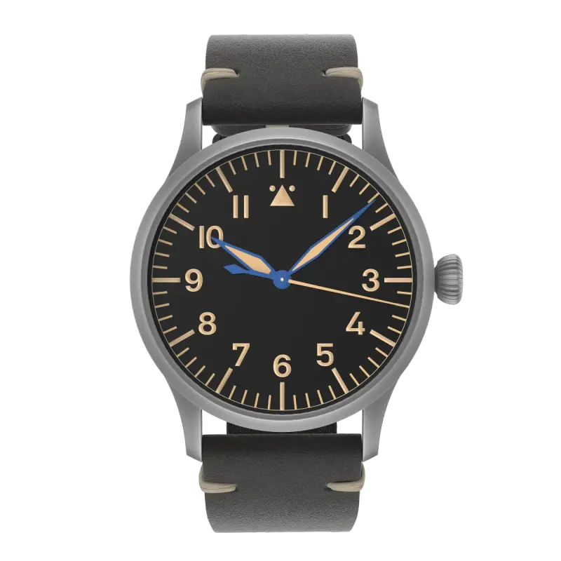 Next up is the Flieger Olymp Silver, of which there are nine pieces. Its matte bead-blasted silver (925/000) case is 42mm (thickness of 13.5mm) with water resistance of 50m. The dial is black with white or Old Radium options for the numbers, markers and hands, including the Super-LumiNova (C3).