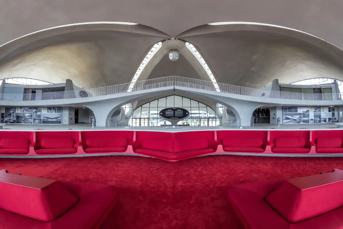 Although no longer a TWA terminal, this distinctive curved concrete building was restored and given a second life as the TWA Hotel. It has become a destination in its own right both for Saarinen’s design (interiors as much as the exterior), and for its location within the airport.