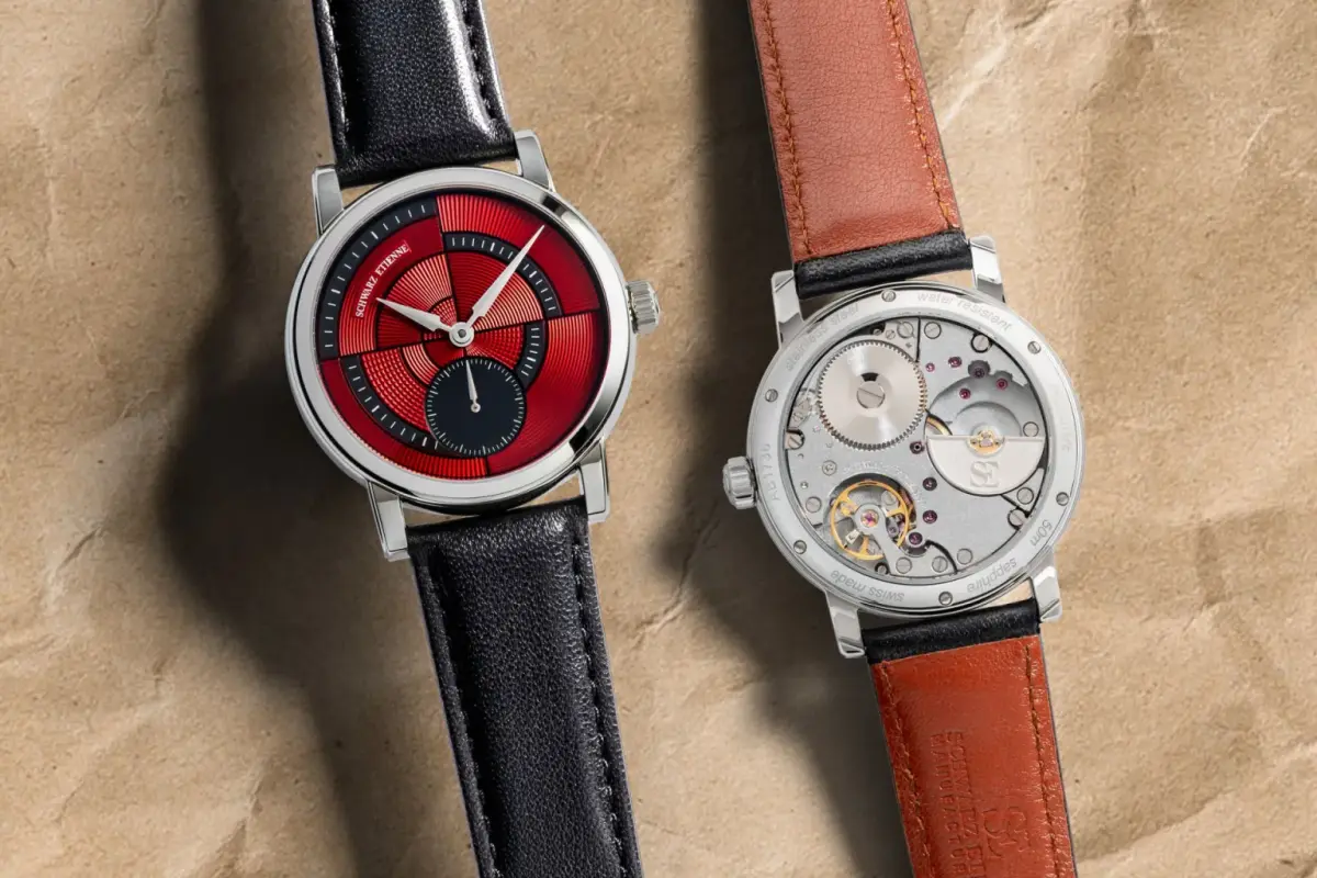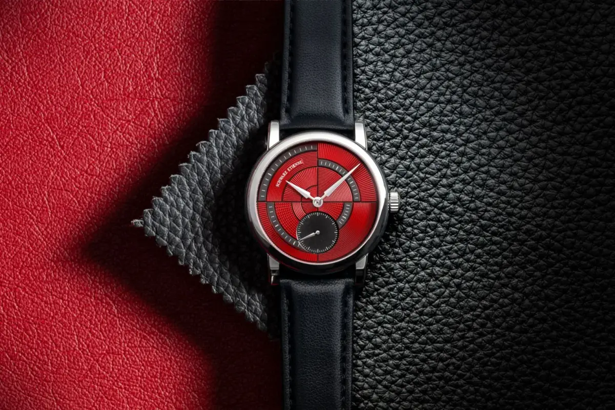 Coming on a black leather strap with brown leather lining and a stainless steel folding buckle, the new Schwarz Etienne Geometry Cherry has an RRP of CHF 21,350.