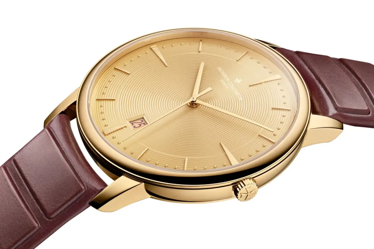 Limited to 100 pieces, the new Patrimony 20th Anniversary Limited Edition comes in a 40mm yellow gold case (thickness of 8.55m) with a gold-coloured dial covered with concentric circles. The applied hour-markers, the ‘pearl’ minutes track and the slender, slightly curved hands following the shape of the dial are also 18k 3N yellow gold. The date display at 6 o’clock has a gold-toned background, this dial colour-matched date window a feature of the other variants of this Patrimony model.