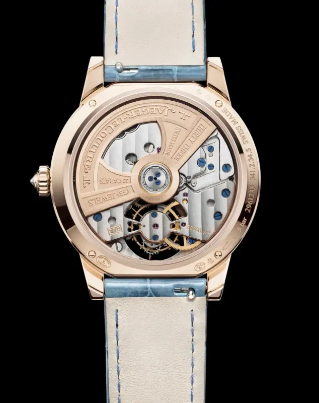 The new Jaeger-LeCoultre Rendez-Vous Jewellery Tourbillon ‘Serenity Blue’ Edition comes on a colour-matched alligator strap with a pink gold folding clasp.