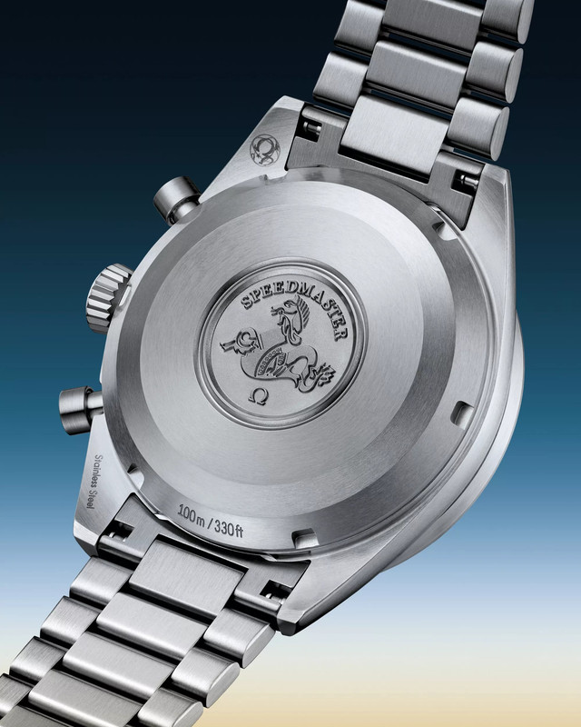 The ‘civilian’ Speedmaster Pilot comes in a brushed stainless steel case with straight lugs (a vintage nod) measuring 40.85mm with a thickness of 14.7mm and water resistance of 100m.
