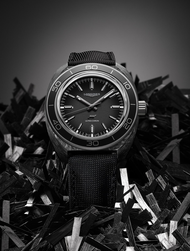 Now, the twenty-first century Ultra-Chron finds itself clad in carbon. This is also the first time that Longines have used it as a case material.