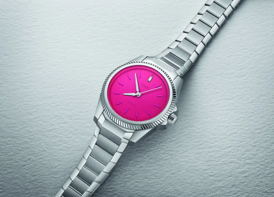 If you thought Kermit was going to fly solo, well you were wrong – Oris have added Miss Piggy to their collaboration with The Muppets in the form of a hot pink version of the ProPilot X. An outsized colour for an outsized Muppet personality.