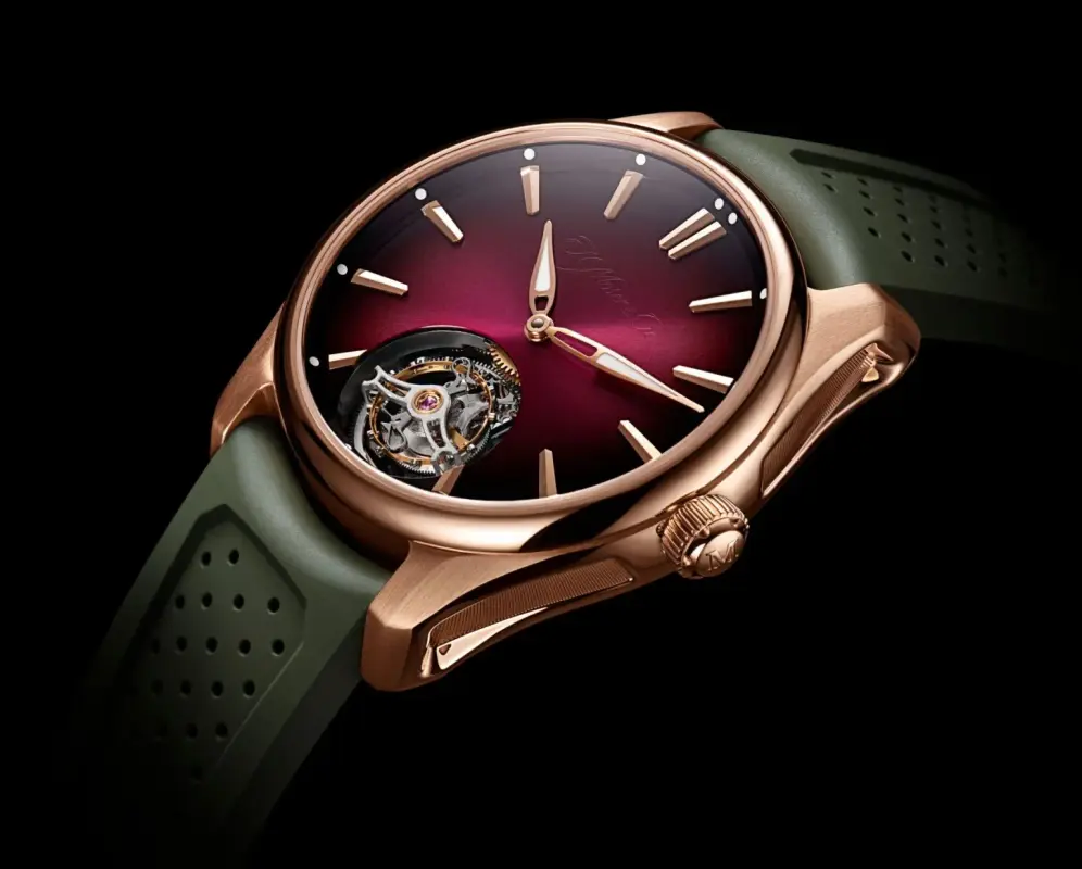 H. Moser & Cie. has a new Pioneer Tourbillon red gold watch model with a burgundy-coloured fumé dial, joining the blue and green variants in the current Pioneer Tourbillon collection.