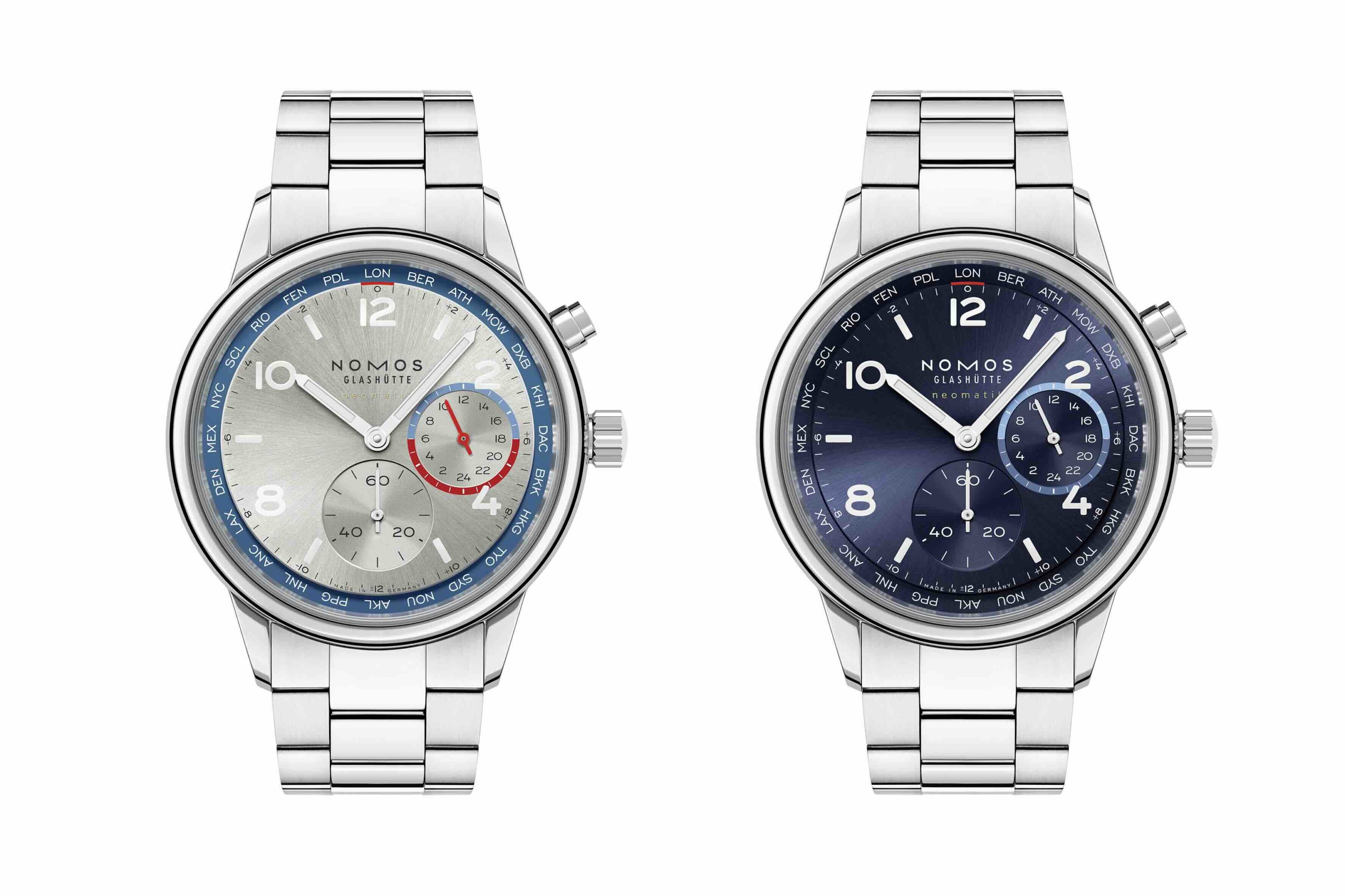 NOMOS Glashütte’s Zürich Worldtimer, which won a number of awards after its launch, is joined by a younger less dressy sibling – the Club Sport neomatik Worldtimer. Featuring a new movement, it comes in two core models in silver and blue, and six models limited to 175 pieces each.