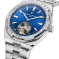 Vacheron Constantin’s Overseas tourbillon gets the high jewellery treatment, with a new model combining white gold and a blue dial with baguette-cut diamonds. The new 42.5mm sized model (thickness of 10.39mm) has its bezel and hour-markers set with eighty-five baguette-cut… Read More ›